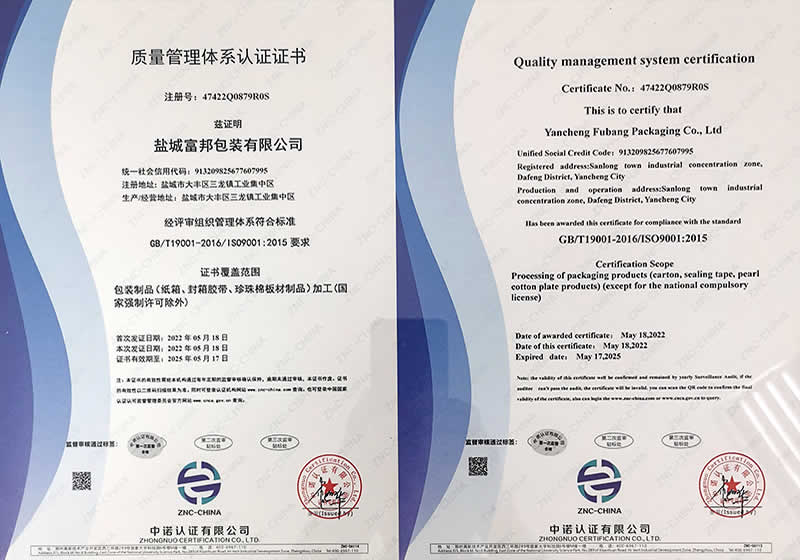 江鹽城富邦包裝有限公司創(chuàng)辦于2011年,地處環(huán)境優(yōu)美的鹽城大豐區(qū)三龍鎮(zhèn)工業(yè)集中區(qū),緊臨331省道和226省道,交通十分便利。是集研發(fā)、生產、經營為一體的中型私營企業(yè),主要生產各種規(guī)格內、外銷中高檔瓦楞紙箱、彩色印刷、封箱膠帶、紙托盤、珍珠棉、EPS(泡沫)成型、免模、大板裁片的專業(yè)工廠,年產瓦楞紙箱達400萬平方米、封箱膠帶260萬平方米、EPS泡沫10萬立方米以上。工廠占地8000平方米,生產廠房近3000平方米,擁有進口1020秋山四色膠印機,生產工藝先進,檢測手段齊全,品質服務保證,本公司已通過ISO9001:2015國際質量體系認證,并嚴格持續(xù)遵照體系認證及商檢部門要求組織生產和經驗管理。。。。。。